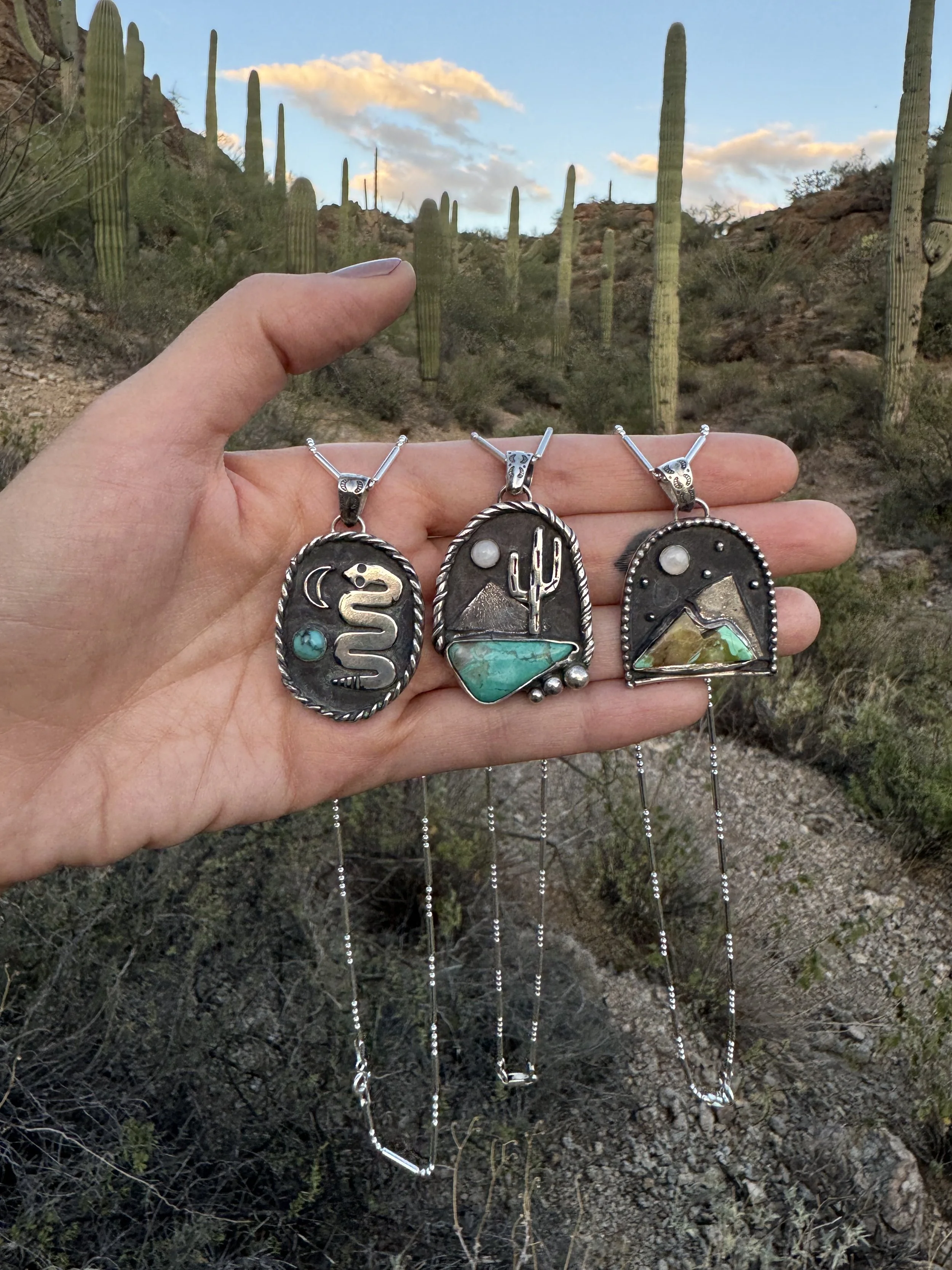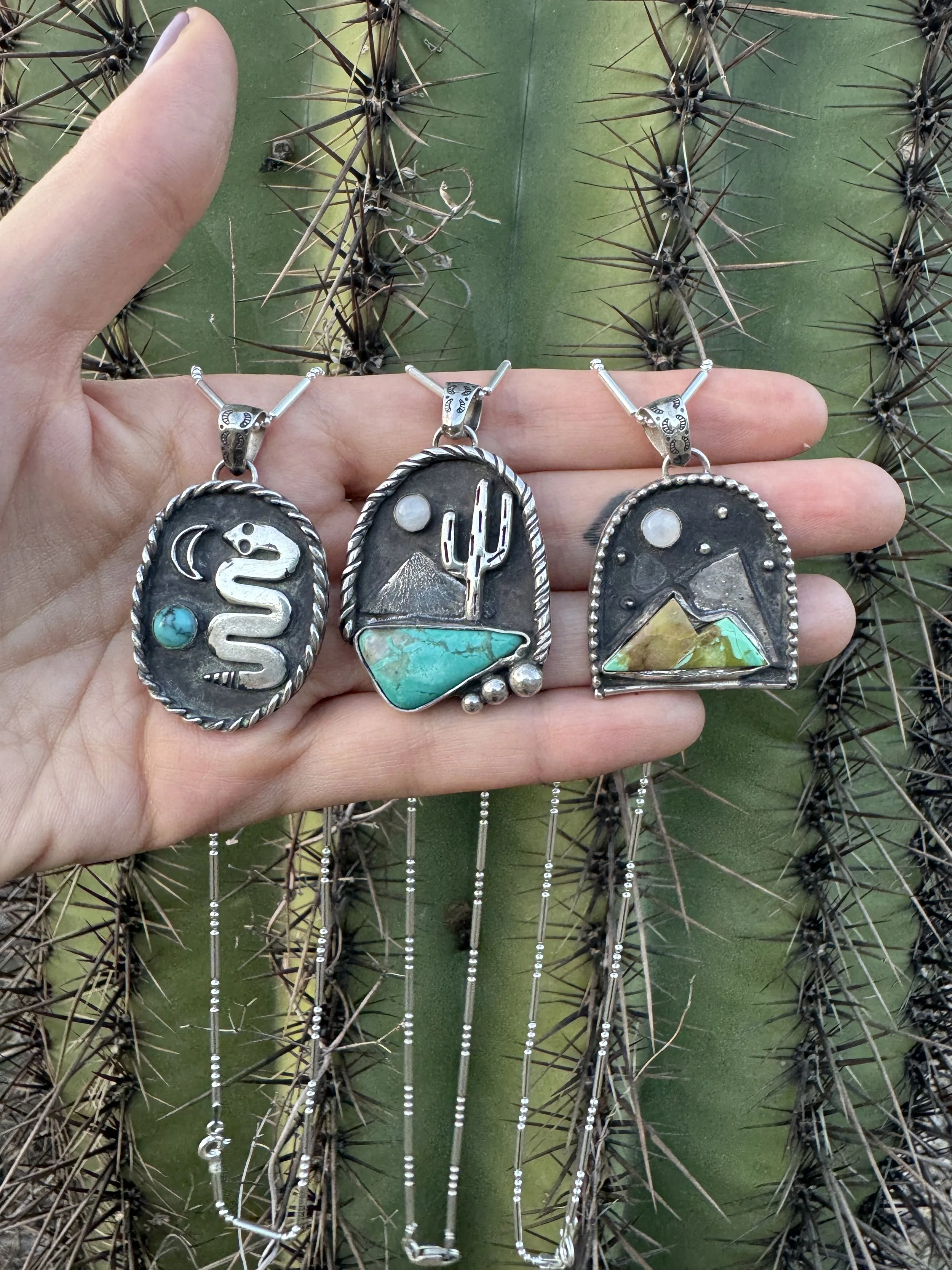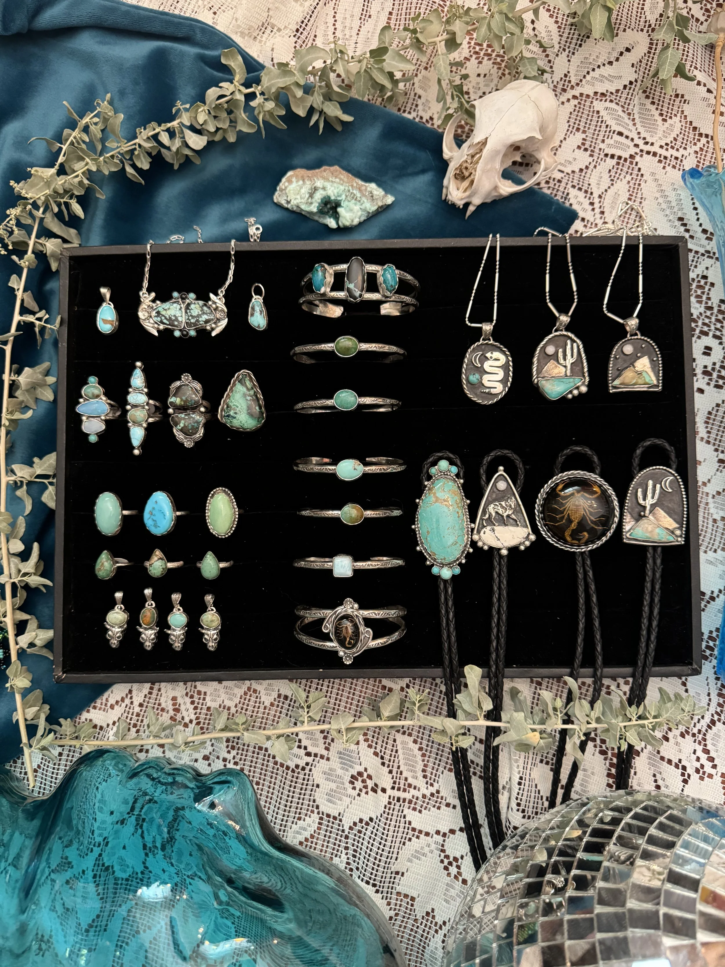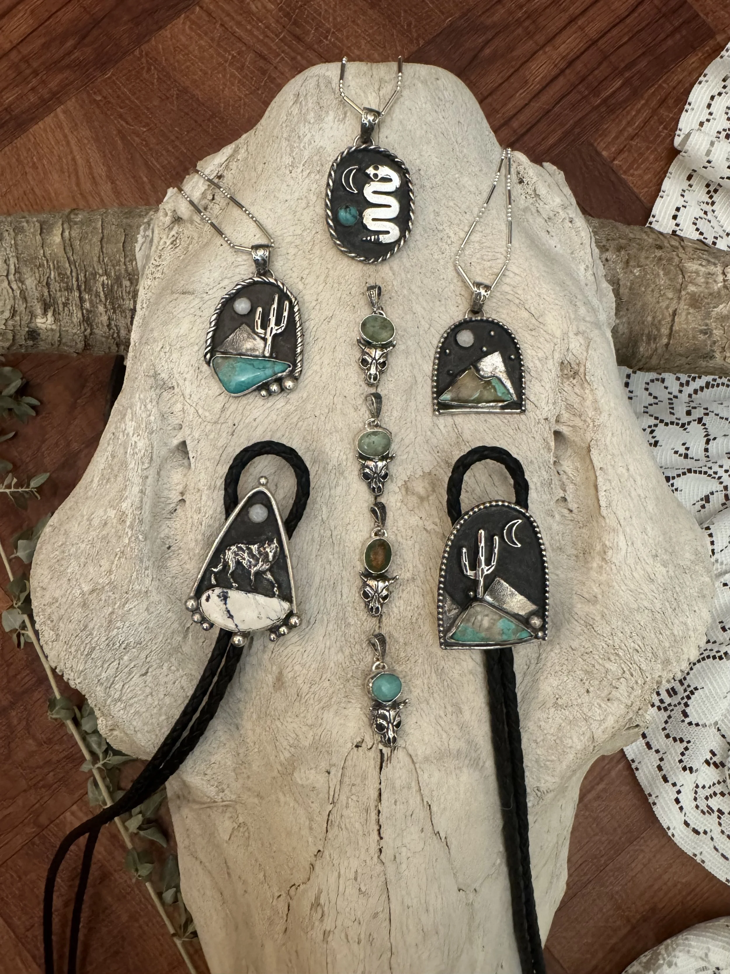 Bolo Ties and Necklaces Scorpion Bolo Tie $165.00 Add To Cart Added! Bumble Bee Jasper Bolo $175.00 Add To Cart Added! Tigers Eye Bolo Tie $180.00 Add To Cart Added! Fossilized Coral Bolo $165.00 Add To Cart Added! Malachite Bolo $400.00 Add To Cart Added! Fluorite Crystal Point Necklace $150.00 Add To Cart Added! White Scorpion Necklace $110.00 Sold out Sold Out Added! Black Scorpion Necklace $110.00 Add To Cart Added! Snake Pendant $265.00 Add To Cart Added! Turquoise Fringe Necklace $155.00 Add To Cart Added! Turquoise Pendant 2 $80.00 Add To Cart Added! Turquoise Cow Skull $98.00 Add To Cart Added! Brown Vein Skull $98.00 Add To Cart Added! Turquoise Mushroom Pendant $110.00 Add To Cart Added! Mexican Fire Opal Mushroom Pendant $105.00 Add To Cart Added! Simple Sterling mushroom Pendant $24.00 Add To Cart Added!