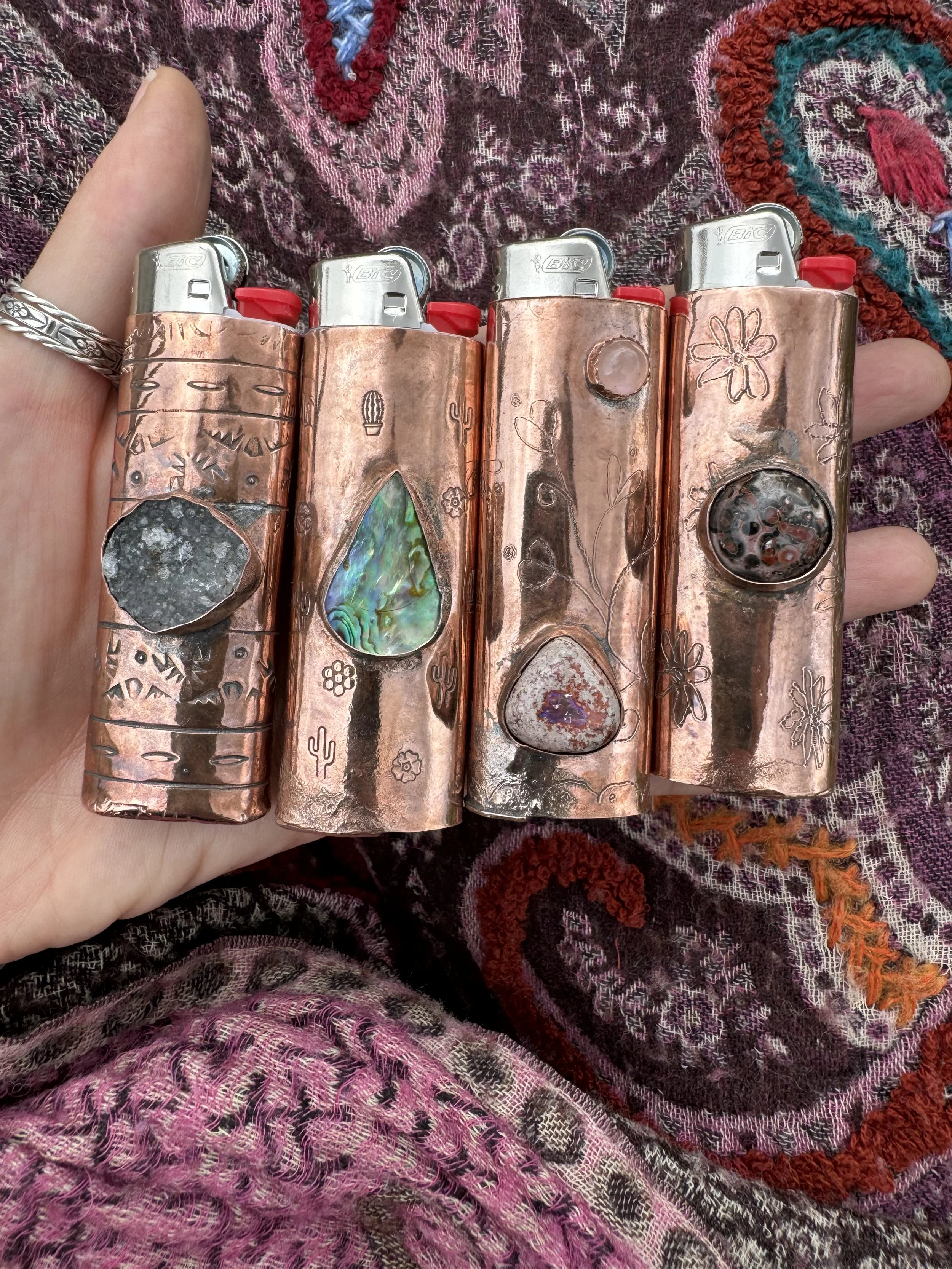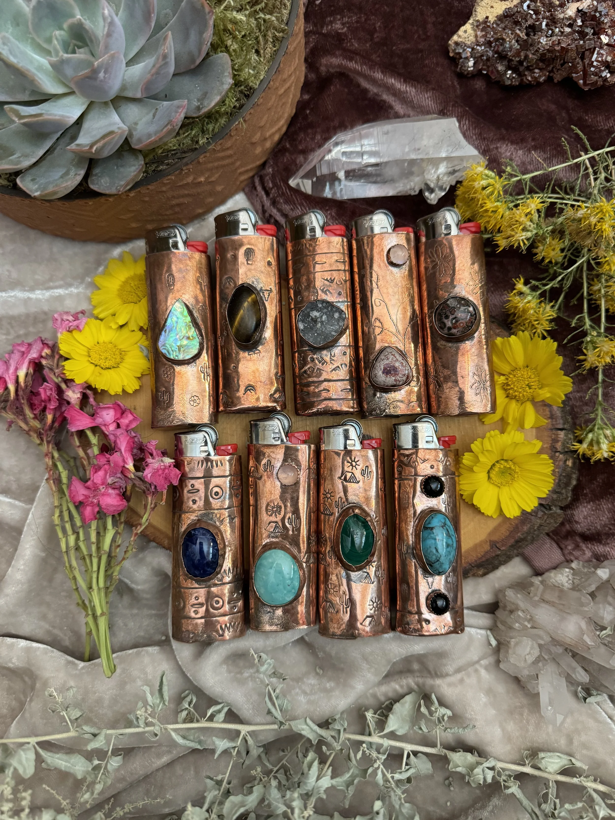 Lighter Cases Turquoise and Onyx Lighter $85.00 Add To Cart Added! Turquoise Lighter Case $85.00 Add To Cart Added! Labradorite Lighter Case $80.00 Add To Cart Added! Amethyst Lighter Case $75.00 Add To Cart Added! Abalone Lighter case $75.00 Add To Cart Added! Opal and Moonstone Lighter Case $85.00 Add To Cart Added! Malachite Lighter Case $75.00 Add To Cart Added! Fire opal Lighter Case $75.00 Add To Cart Added!